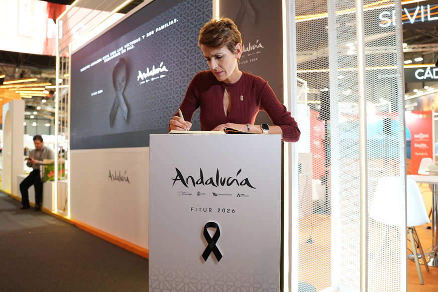 Por otra parte, finalizado el acto del Día de Navarra, la Presidenta Chivite se ha acercado al stand de Andalucía donde ha firmado en el libro de condolencias por el accidente ferroviario.